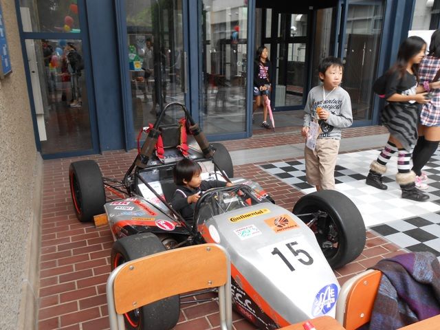 当日には多くの来場者が立ち寄り、子供だけでなく大人も立ち止まりマシンを眺めたりコックピットに乗ってみたりしました。中にはコックピットに乗るよりも、マシンの後方を一心不乱に見つめる子供もいて将来有望に感じました。多くの人にマシンに興味を持っていただくいい機会となりました。