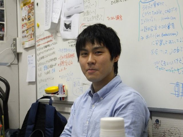理工学部1年、河合謙です。父親の車好きに影響されて、自工研に入りました。