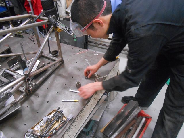 その間自分はというと暇をみつけてはガレージに入り浸っておりました。そのおかげか摺り合わせや溶接、渉外活動などまだまだ至らない点も多いものの、なんとか形になってまいりました。近頃は課題等に追われて少々出席率が落ちてしまっておりますが、このまま足が透けてしまわないよう気を引き締めて頑張らせていただきます。